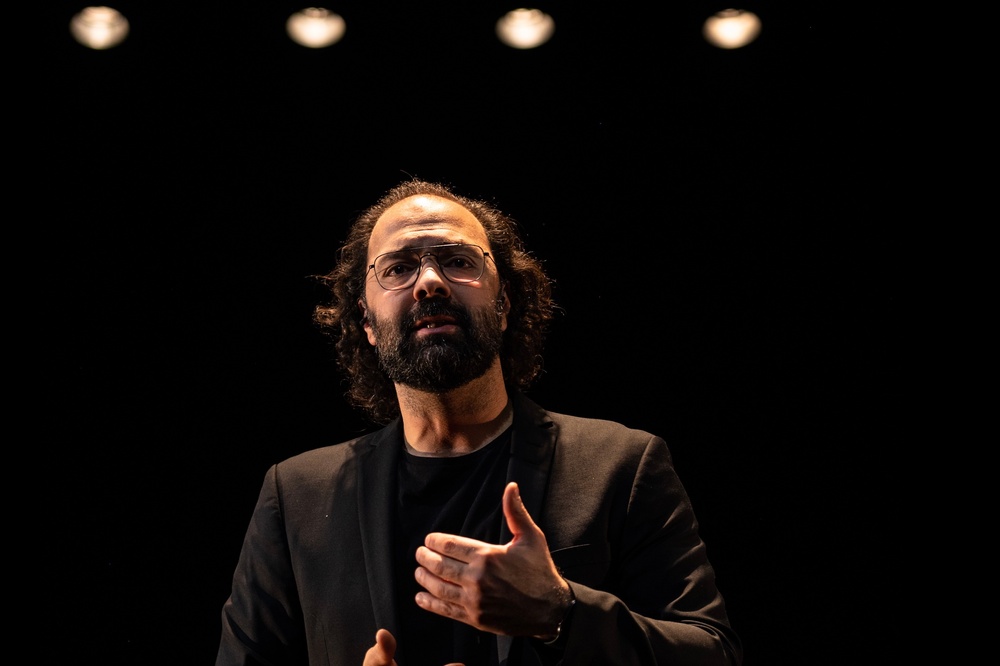 Né en Iran, Mani a grandi à Paris, à Toronto et à Ottawa pour finalement atterrir à Montréal. Face à la multiplicité de ses identités et de ses appartenances, il interroge ses origines. Qu’est-ce que ça signifie être né quelque part? Sommes-nous ce que nous disons et faisons ou ce que les autres projettent en nous? Avec humour et dérision, il questionne ce qui reste d’iranien en lui pour mieux explorer la diversité et la complexité de ce qui nous construit tous et chacun. Mise en scène de Mani Soleymanlou et Alice Ronfard.